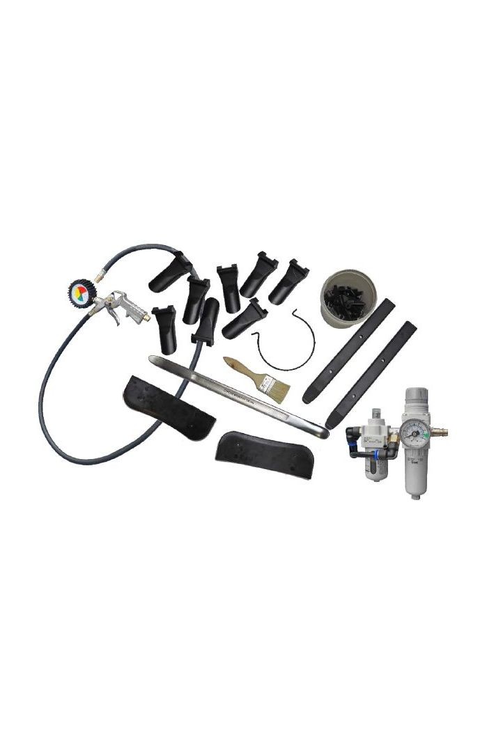 Ogromny zapas nakładek ochronnych w standardzie oraz pistolet do pompowania z długim wężem.
