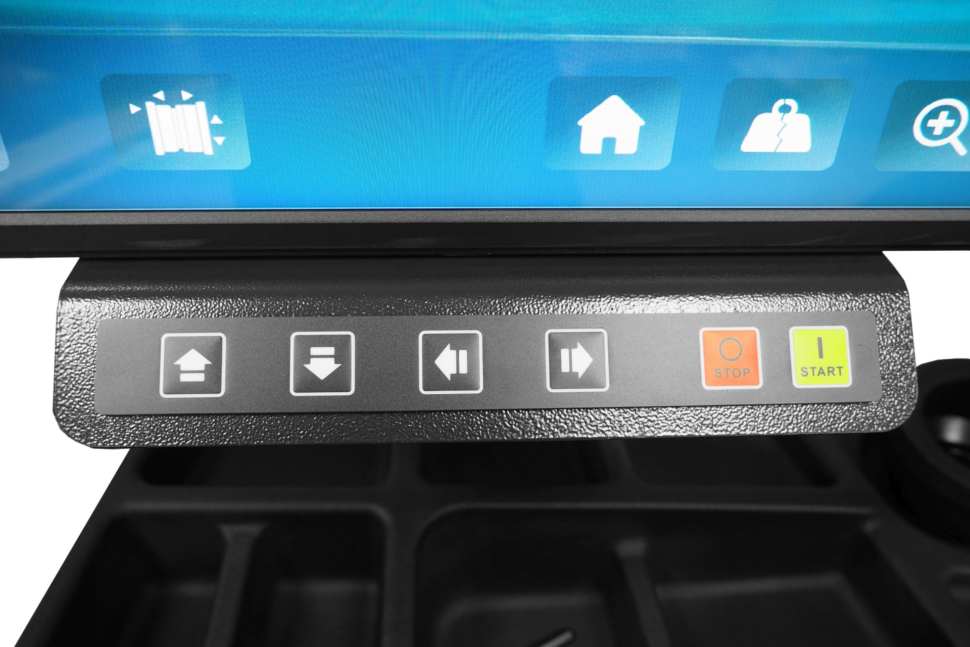 Czytelny panel kontrolny ułatwiający kalibrację i diagnostykę maszyny.